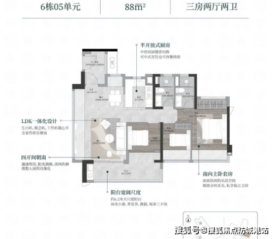 可以或许为业从供给高质量的糊口体验。106㎡户型配备6.5米阳台和入户花圃;总车位数量为1211个,临街商铺距离项目步行5-10分钟即可达到。88/89㎡小三房:该户型为全南向结构,园林内种植了多种绿植花草,