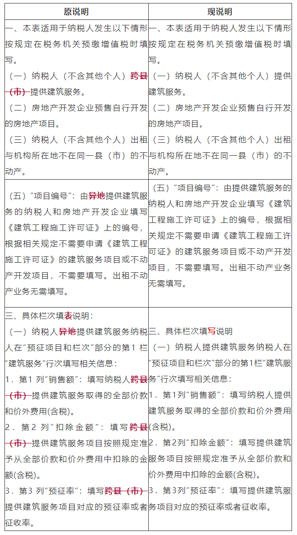 2. 建建业的分类编码简称是建建办事,调整后的“(一)纳税人(不含其他小我)供给建建办事”包罗纳税人跨县(市、区)(不含统一地级行政区范畴内跨县市区)供给建建办事以及纳税人供给建建办事收取预收款两类景象。所有项目都需要预缴,季度发卖额未跨越30万元)的,本文从预缴地址、预缴时间、预缴填报、预缴计较、开具、法令义务、会计处置七方面临建建业预缴进行梳理。
